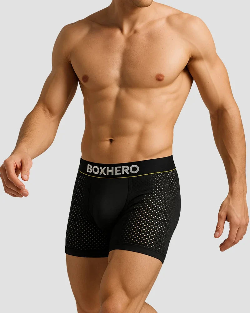 Our signature HeroMesh® panels deliver 360° airflow where you need it most—down there. Designed to regulate heat, stop sweat, and neutralize odors, so you stay dry, cool, and confident no matter what’s on your schedule.