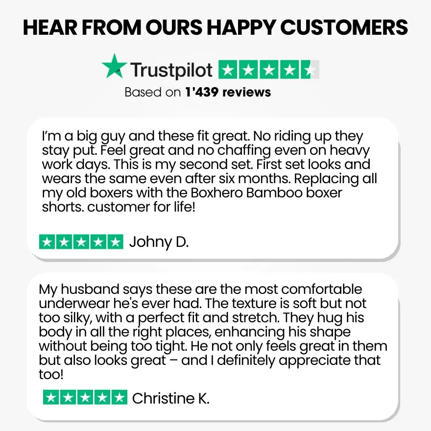 We believe in hassle-free shopping. That’s why Boxhero Bamboo Boxer Shorts come with free returns and exchanges.